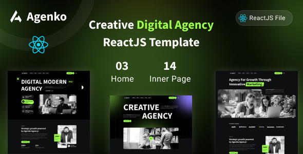 Agenko is a fully responsive, high-performance ReactJS template crafted for digital agencies, startups, creative firms, and more. Designed with modern web standards in mind, Agenko provides an elegant foundation for building visually striking websites.This template easily customizable, fully responsive and support all modern browser and device.