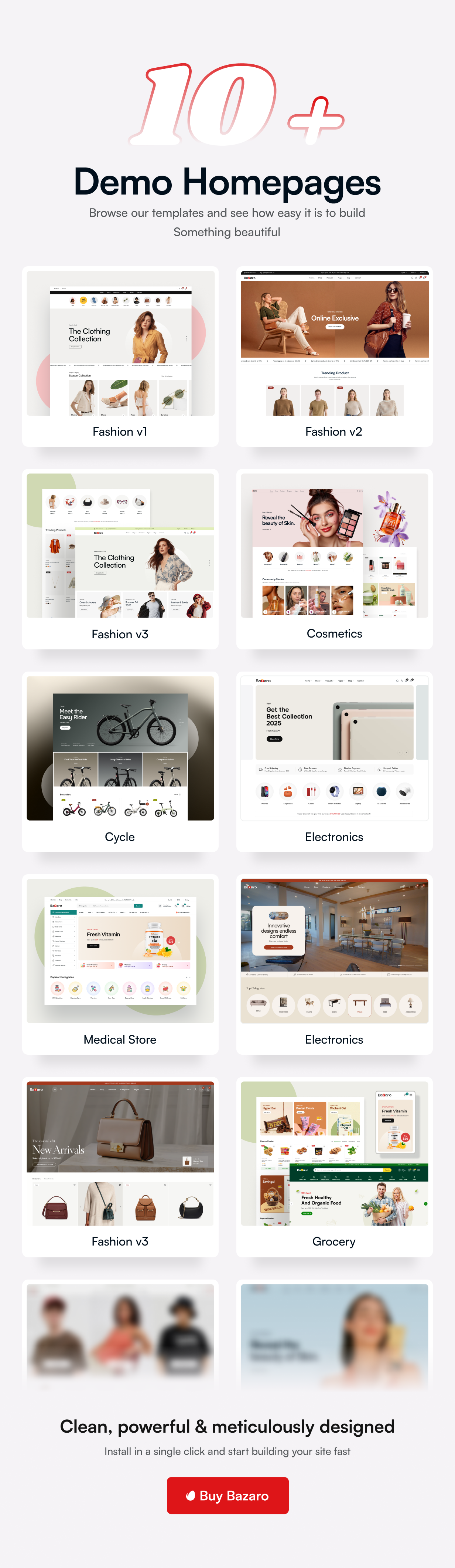 Discover the power of Bazaro — where every demo serves as a strong foundation for a dynamic, responsive, and scalable e-commerce website.