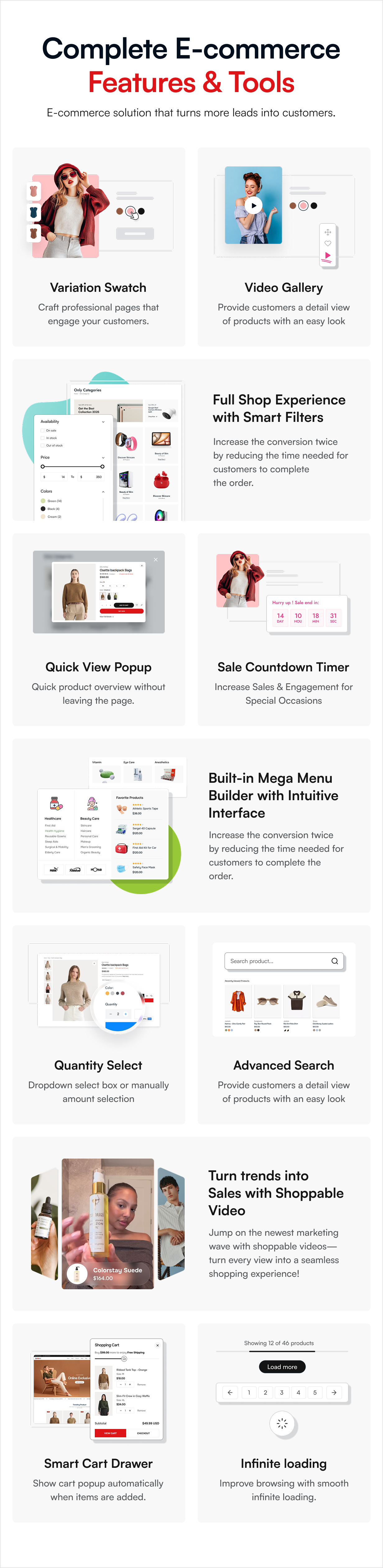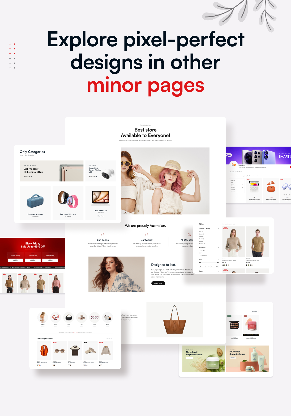 Each demo is fully responsive, delivering a smooth and consistent experience across all devices and screen sizes. Whether you’re launching a Fashion store, Electronics shop, Outdoor brand, Medical store, Cycle, Grocery shop, Furniture shop,Hand bags, Cosmetics shop or any other e-commerce venture, Bazaro adapts effortlessly to your needs. Beyond aesthetics, every demo comes equipped with complete e-commerce functionality to help you build a professional and high-performing online store.