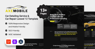 Axemobile is a professionally designed HTML and Laravel template built specifically for automotive detailing and car repair services. Ideal for car detailers, auto workshops, vehicle maintenance centers, paint correction professionals, ceramic coating providers, and other auto care businesses looking to establish a professional and impactful online presence. Crafted with modern design principles and developed using