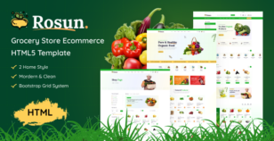 Rosun – Grocery Store Ecommerce HTML5 Template Rosun is a modern and fully responsive HTML5 template designed specifically for grocery store websites. Built with eCommerce in mind, it offers all the essential features needed to create a user-friendly and professional online grocery store. Whether you’re launching a small local grocery shop or a large online